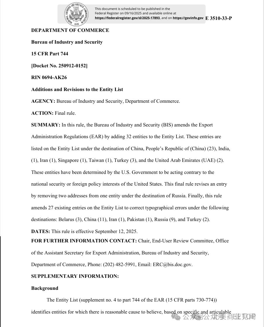 图2 美国商务部发布最新出口管制清单 涉及中国实体23家