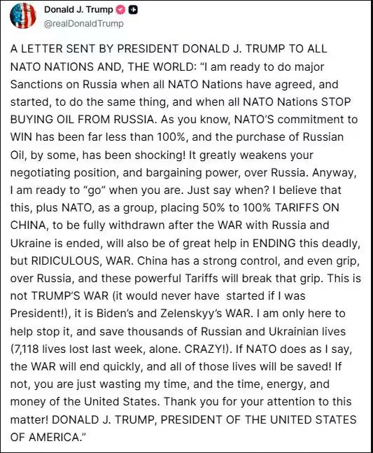 图3 特朗普意同北约一起对购买俄罗斯油气的国家征收额外关税