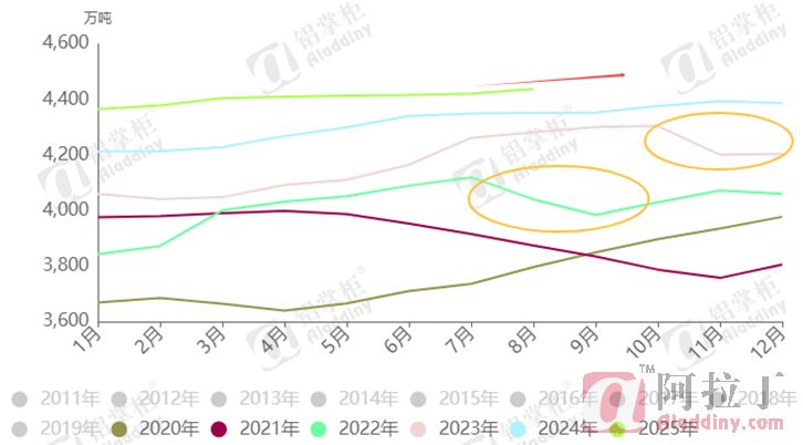 从2025年年内铝价整体走势看,影响铝价的各类因素中,产业链因素常常退居次席,但鉴于国庆节前与2023年同期的诸多类同因子,在推演国庆节后铝价走势之前,我们不妨多借鉴一下以下几张产业链因素图。