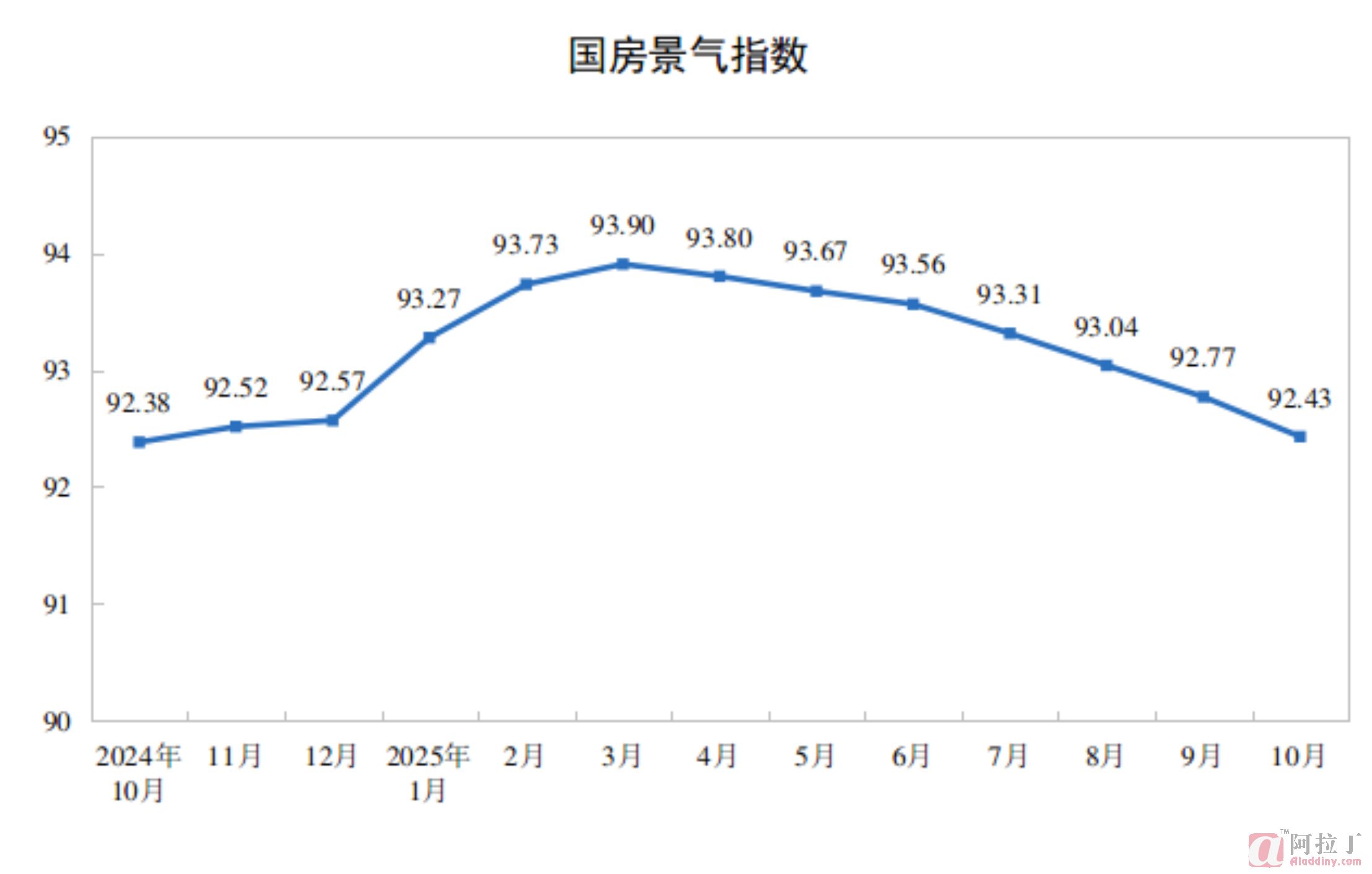 10月份,房地产开发景气指数(简称“国房景气指数”)为92.43。